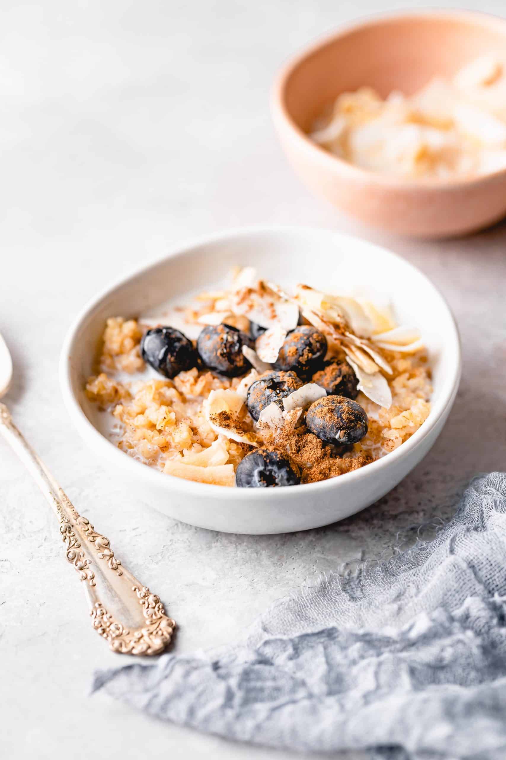 ย This Coconut Bulgur Breakfast Bowl is a warm, nutritious, filling, and of course a delicious way to begin your day. I can guarantee youโll want to swap out your bowl of oatmeal for this!