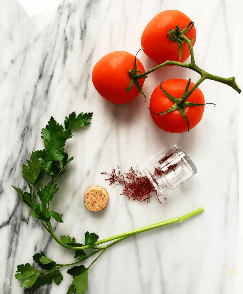 - 2 pinches Spanish saffron soaked in 1/4 cup water